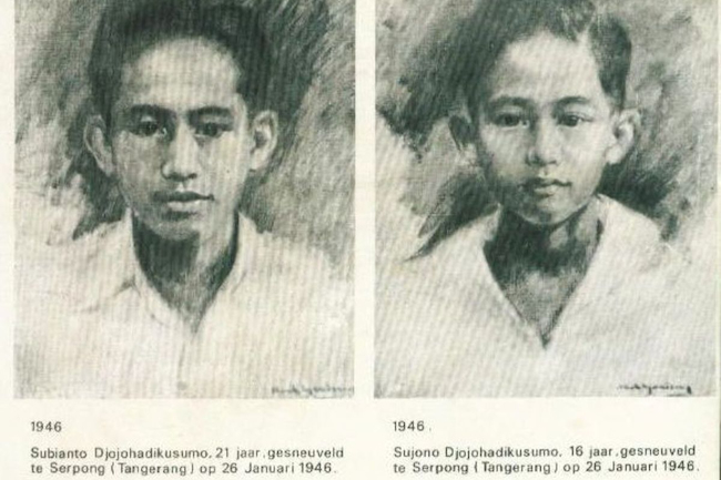 The two younger brothers remained in Jakarta where Subianto attended the elite medical school, Stovia, and Sujono was still in high school. Shortly after the declaration of independence on 17 August 1945, Subianto, aged 21 years, joined the newly established Military Academy in Tangerang. Sujono, aged only 16, joined him. On 25 January 1946 the brothers were killed together with more than 30 others in an attempted raid on a weapons post south of Tangerang.
