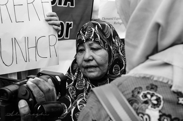 I was walking around when I noticed the elderly woman talking to the media. She was saying, ‘I have pain all over my body. I can’t walk and it’s a very sad moment for me’. She spoke in Farsi (Persian) and someone translated for her into Bahasa Indonesia. The way she was holding her arms and hands, it struck me. So I started taking around seven to eight frames while changing the settings.