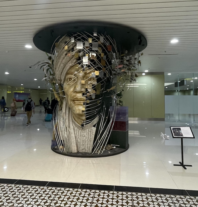 From the outset, the Sultan expressed his desire that the YIA project serve as a cultural monument, commemorating one aspect of the Governor’s vision for DIY, ‘the civilisation of the Indian Ocean for the glory and dignity of Yogyakarta’s people’. This is reflected in the design of the airport itself, its permanent exhibits and interiors, which amplify this endeavour to create the future of a modern city through the airport and aerotropolis. Permanent exhibits, or ‘Jogja Renaissance’, include reliefs about the five displaced villages (Palihan, Glagah, Sundutan, Jangkaran and Kebon Rejo), through which the curators attempt to ‘acknowledge the history of the area that has been used for the airport development’. There are doubts about the accuracy of the history being portrayed.