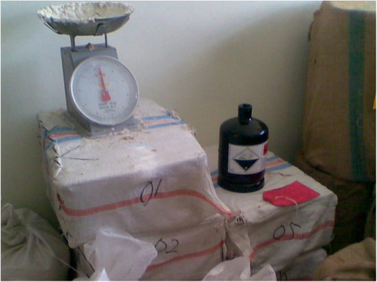 Packed mercury sits in the warehouse of a registered distributor. In the field, the authors found that government monitoring was rare. (Yuyun Ismawaty)
