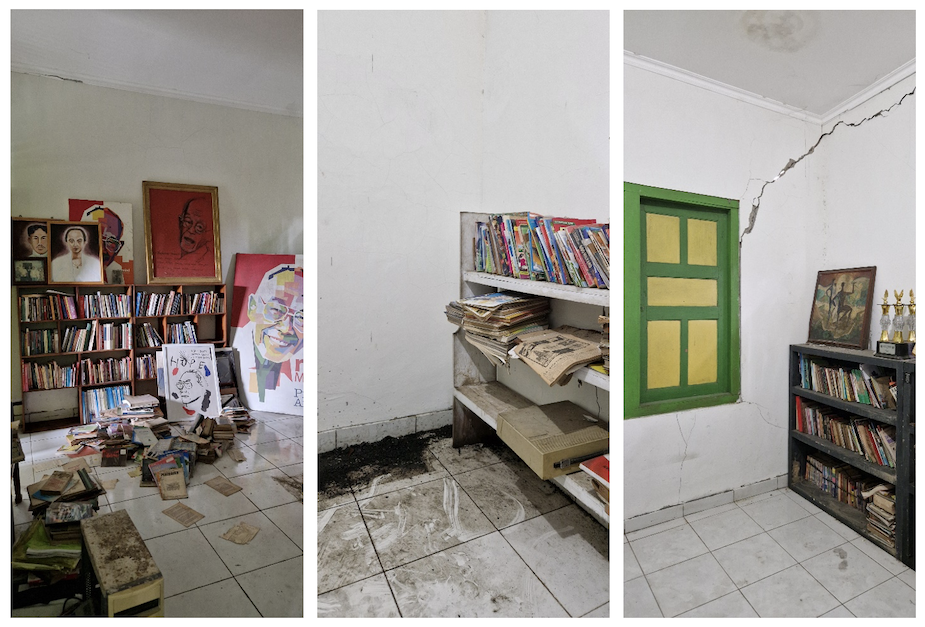 Begitu saya melangkah masuk, hati saya digenggam risau. PATABA seperti tubuh tua yang pelan-pelan menyerah pada waktu. Dinding ruang depan belah, nyaris rebah. Jamur hitam tumbuh leluasa, menyelimuti lantai ruang penyimpanan buku. Karya-karya Pram, juga buku-buku tentangnya, rusak digerogoti rayap, lembap, dan dan musim yang tak bersahabat. Sebagian lainnya hilang begitu saja. Entah karena abai atau mungkin dicuri. Budhe Suratiyem menyebut salinan asli Cerita dari Blora sempat dipinjam oleh seorang pejabat kabupaten yang kemudian memutuskan untuk lupa mengembalikan.