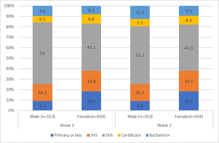 The statistics on the respondents’ levels of education remained relatively stable between the first two waves. Only a handful of the high school graduates gained tertiary qualifications during that time, while hardly anyone who had finished only junior high school in the first wave had, as an adult, gained higher qualifications by the second. In other words, for the majority of respondents, pathways to further education disappear once they leave school. It is almost impossible for them to acquire high school qualifications as adults, or tertiary qualifications. What many senior high school graduates need is pathways to post-school education that are easy to access, affordable, and relevant to the job market.